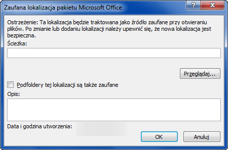 W oknie Zaufana lokalizacja pakietu Microsoft Office należy: