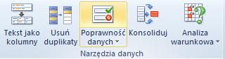 • na karcie Dane w grupie Narzędzia danych wybrać polecenie Poprawność danych