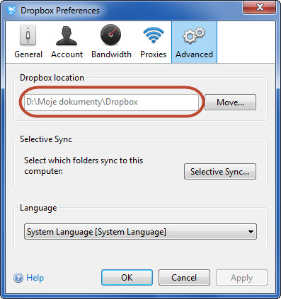 Popularna usługa do przechowywania plików w chmurze - DropBox - synchronizuje foldery tylko wewnątrz jednej wskazanej lokalizacji - folderu DropBox. Aplikacja nie umożliwia wskazania innego folderu znajdującego się poza folderem DropBox. Istnieje jednak możliwość, aby to ograniczenie ominąć.